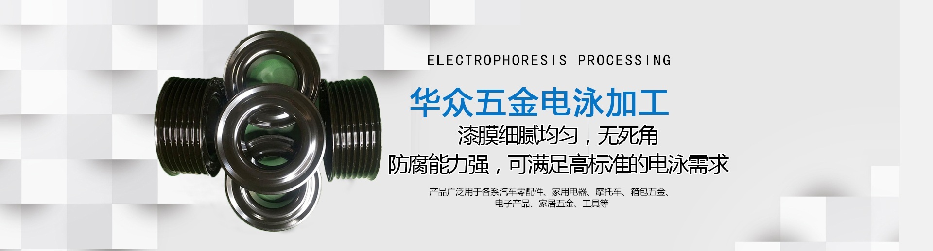 About us龍巖市華眾機械有限公司成立于2010年12月,新廠位于福建省龍巖市新羅區(qū)東寶工業(yè)集中區(qū),注冊資本3000萬元,占地27000平方米,員工60多人,是一家專業(yè)從事電泳、磷化、數(shù)車等加工業(yè)務(wù)的制造型企業(yè),是國家高新技術(shù)企業(yè),擁有三十多項實用新型專利。 我司的電泳技術(shù)和品質(zhì)在華南地區(qū)深受客戶信賴。公司擁有20年以上經(jīng)驗豐富的技術(shù)人員和管理人員,擁有全自動電泳生產(chǎn)設(shè)備,所采用原料均為美國、德國進(jìn)口,產(chǎn)品品質(zhì)能達(dá)到國際電泳涂裝標(biāo)準(zhǔn)要求,廣泛應(yīng)用于汽車零部件、機械配件、電子產(chǎn)品、工藝品等一系列金屬制品。現(xiàn)配套服務(wù)于比亞迪、吉利、通用、福特、大眾、豐田、現(xiàn)代等全球知名汽車公司。 2018年8月公司通過NSF-ISR管理評審,獲得IATF16949質(zhì)量管理體系證書。